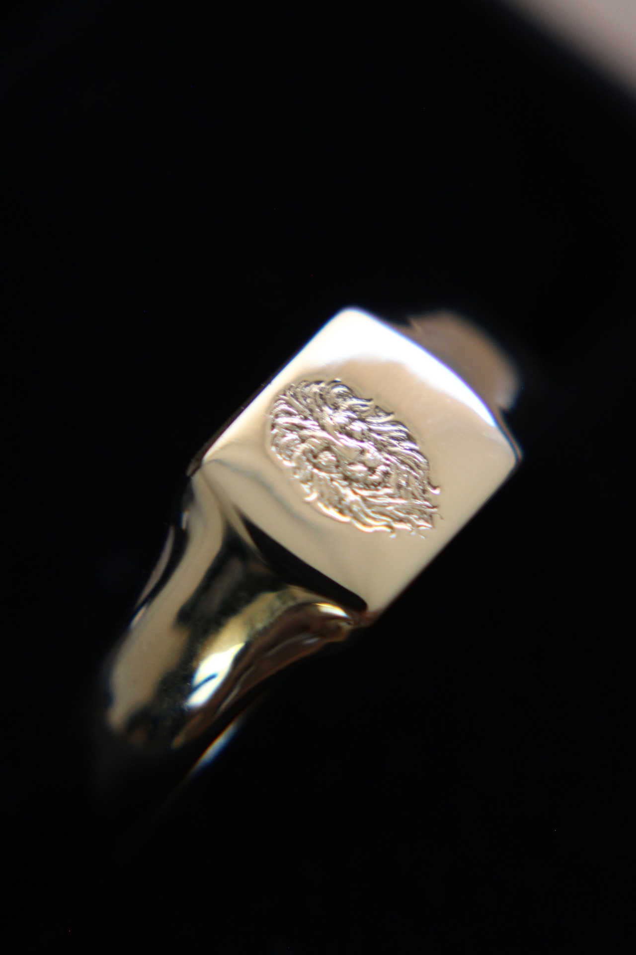 Forjado en oro de 18 quilates, este anillo de 4 gramos representa poder, liderazgo y determinación. Su diseño sólido y pulido enmarca un grabado de león cuidadosamente detallado, símbolo de fuerza interior y dominio propio.